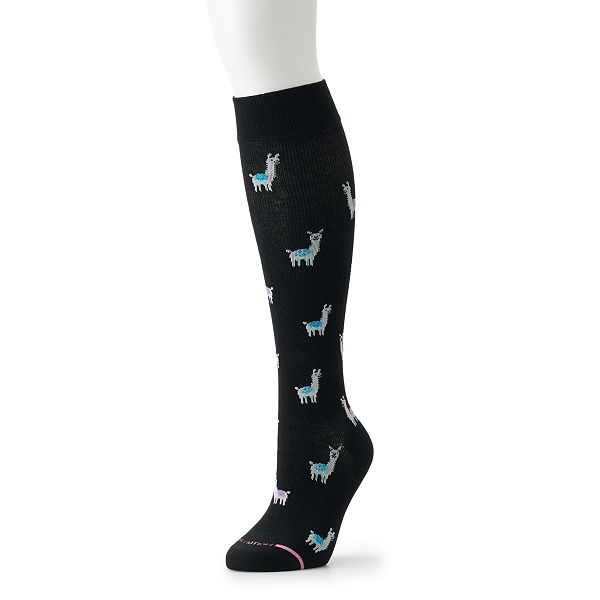 Women S Dr Motion Everyday Mild Compression Knee High Socks Llama Print